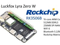 Luckfox Lyra Zero W — это компактный одноплатный компьютер (SBC) построенный на базе 3-х ядерного процессора Rockchip RK3506B Cortex-A7, оснащенный разъемом MIPI DSI, модулями WiFi 6 и Bluetooth 5.2, и предназначен для разработки интеллектуальных беспроводных панелей (HMI). Плата выпускается в форм-факторе размера Raspberry Pi Zero. На плате распаяно 512 МБ ОЗУ, 256 МБ SPI Flash-памяти, слот для карт microSD, два порта USB-C, разъем USB 2.0 и 40-контактный GPIO разъем совместимый с Raspberry Pi.